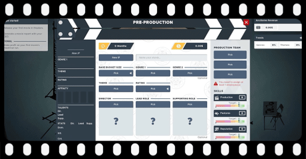 The Executive is a sandbox business simulation game that lets you rewrite the history of Hollywood from the 1970s to today. As the founder of a scrappy production company, you’ll produce the movies you’ve always dreamed of, manage ambitious franchises, and build a studio that rivals the industry’s greatest. Navigate the challenges of the movie business, outmaneuver your competition, and decide whether to chase critical acclaim or box office domination.