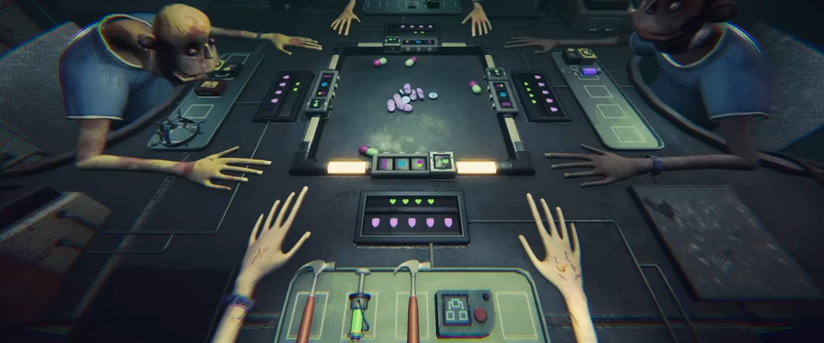 Welcome to Side Effects: a tense, turn-based medical roulette game. Each round you'll be presented with a selection of pills. Some are helpful, some are harmful, and some mean instant death. You never know what you're about to consume or what it might do to your mind or body. Winning means outlasting – AKA, outliving – your opponent across the table.